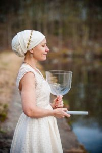 Mirabai’s life changing experiences with kirtan and mantra practice led her to explore other sound healing modalities. She now uses crystal singing bowls, chimes and other vibratory instruments with groups and individual clients for healing and transformation work. Mirabai tours across North America and internationally, sharing chant music and sound healing in yoga studios, healing centers, and festivals. Her offerings guide participants into experiences of profound healing and unconditional love through Bhakti Yoga practices.